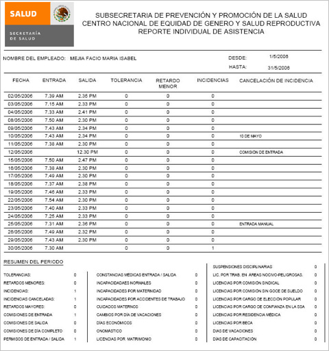 Plataforma desarrollada para el Centro Nacional de Equidad de Género y Salud Reproductiva de la SecretarÃa de Salud el cual permite el control de asistencia con control biométrico, asà como la gestión de recursos humanos desde las vacaciones, viáticos, control de incidencias, capacitación, permisos, entre otros.